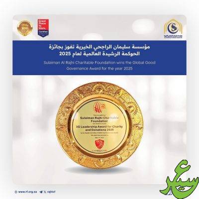 تُوّجت مؤسسة سليمان بن عبدالعزيز الراجحي الخيرية، أحد الكيانات التابعة لوقف الشيخ سليمان بن عبدالعزيز الراجحي، بجائزة “القيادة في مجال الأعمال الخيرية والتبرعات لعام 2025م” ضمن جوائز الحوكمة الرشيدة العالمية (Global Good Governance Awards – 3G Awards)، إحدى مبادرات برنامج كامبريدج للحكم الرشيد العالمي (Cambridge 3G Programme)، وذلك تقديراً لتميّزها في تطبيق معايير الحوكمة المؤسسية، وقيادتها المؤثرة في العمل الخيري محليًا ودوليًا.