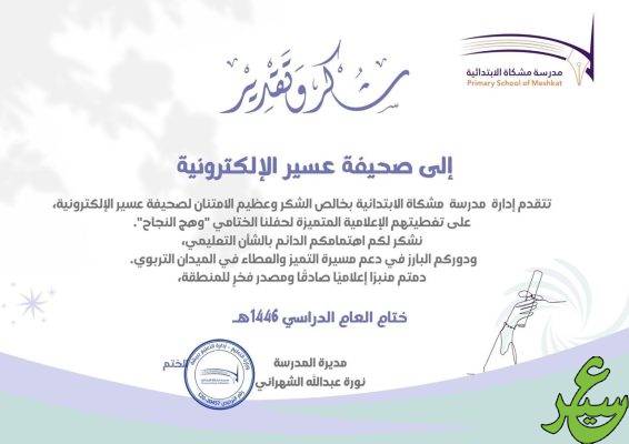 احتفلت مدرسة مشكاة الابتدائية صباح اليوم الخميس بنجاح الدفعة الثانية من طلاب وطالبات المدرسة للعام الدراسي الحالي١٤٤٦ ، وذلك على مسرح وقف جمعية مشكاة القرآني.