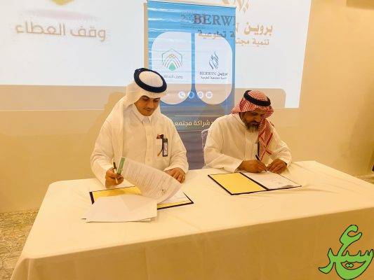 وفي نهاية الحفل وقع رئيس فريق بروين التطوعي المستشار فيصل الشمري عدد من الشراكات مع وقف العطاء وشركة سمارت ميديكيال الطبية .