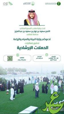 برعاية محافظ الطائف صاحب السمو الملكي الأمير سعود بن نهار بن عبد العزيز، تستعد وزارة البيئة والمياه والزراعة لإطلاق فعاليات الحملات الإرشادية الزراعية بالمحافظة بعد غدٍ الأربعاء، وذلك على مدار ثلاثة أيام متتالية، خلال الفترة المسائية من الساعة الرابعة حتى التاسعة مساءً.