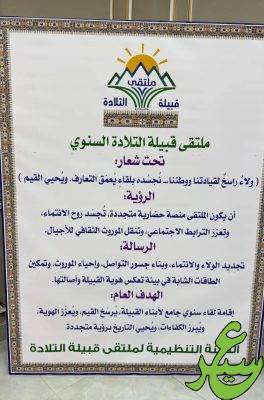 في مشهد يفيض بالمحبة والأصالة، شهدت قبيلة التلادة مساء يوم الإثنين (١٤٤٧/١/١٢هـ) لقاءً سنويًا مميزًا، يهدف إلى توثيق أواصر القربى، وتعزيز روح التأزر والتآخي بين أفرادها، وترسيخ الموروث الثقافي في نفوس الأجيال الناشئة.