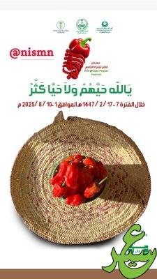 تحت رعاية صاحب السمو الملكي الأمير فيصل بن بندر بن عبد العزيز أمير منطقة الرياض تنطلق فعاليات مهرجان فلفل شقراء الخامس -بمشيئة الله -يوم الجمعة الأول من أغسطس 2025م ، من جانبه تقدَّم سعادة محافظ شقراء الأستاذ عادل بن عبد الله البواردي بجزيل الشكر والامتنان لصاحب السمو الملكي الأمير فيصل بن بندر بن عبد العزيز أمير منطقة الرياض على تفضله برعاية المهرجان للعام الثاني على التوالي وفي النسخة الخامسة منه مبيناً أن هذه الرعاية الكريمة تأتي امتداداً لجهود القيادة الحكيمة لكل ما يساهم في تنمية الوطن والمواطن على حد سواء ودعم المنتج المحلي التي تزخر به بلادنا في كل رقعة منه ولله الحمد .