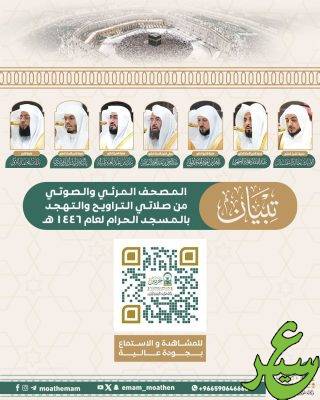 وأوضح معاليه أن المصحف المرئي والصوتي يُوثّق تلاوات صلاتي التراويح والتهجد التي أُقيمت خلال الشهر الكريم، ويضم نخبة من التلاوات المباركة لأصحاب المعالي والفضيلة أئمة المسجد الحرام، مضيفًا أن هذه المبادرة تأتي في إطار جهود الرئاسة في توثيق ونشر التلاوات المباركة وتيسير الوصول إليها عبر الوسائط التقنية الحديثة، بما يعزز من الأثر الإيماني والروحي لها.