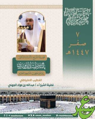 خطيبي الجمعة في الحرمين الشريفين ليوم 7 صفر 1447هـ
