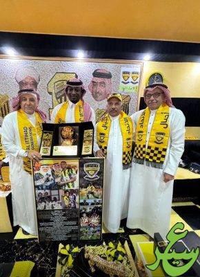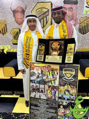 “بإتحادنا نعتز ونفخر”، إلى جانب لوحة فنية تحاكي مسيرته الرياضية المميزة مع نادي الاتحاد.