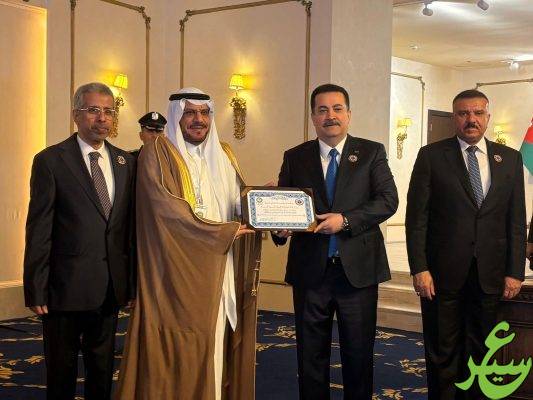 وسلم رئيس مجلس الوزراء العراقي السيد محمد شياع السوداني، الجائزة، لمدير عام الدفاع المدني اللواء الدكتور حمود بن سليمان الفرج.
