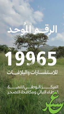وأوضح المركز أن الرقم الموحد يتيح استقبال البلاغات المتعلقة بالغطاء النباتي، إضافة إلى الشكاوي الخاصة باختصاصات المركز، كما يُمكّن الرقم من متابعة شكاوى المستفيدين المرتبطة بالخدمات التشغيلية والرقابية، وتقديم الاستفسارات العامة حول المبادرات والبرامج التي ينفذها المركز.