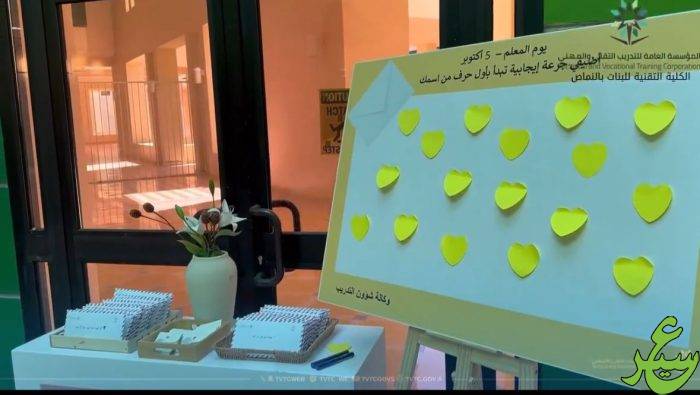 ، عبّروا فيها عن شكرهم واعتزازهم بجميع أعضاء هيئة التدريب لما يقدمونه من عطاءٍ وتفانٍ في أداء رسالتهم التعليمية.و مكانة المعلم في بناء الإنسان، وأهمية دوره في تحقيق مستهدفات رؤية المملكة 2030 من خلال الإسهام في تطوير المهارات الوطنية ورفع كفاءة المتدربات