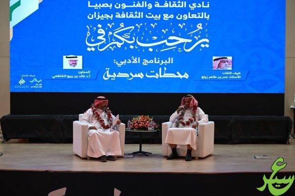 في أمسية ثقافية أدبية بارزة، نفّذ نادي الثقافة والفنون بصبيا بالتعاون مع بيت الثقافة، البرنامج الأدبي المتميز “محطات سردية” مساء أمس الإثنين . وقد أقيم اللقاء- على مسرح بيت الثقافة- من خلال أستضافة كريمة للأستاذ: عمر بن طاهر زيلع، والمحاور له الأستاذ الدكتور: خالد بن ربيع الشافعي، وسط حضور نوعي من المثقفين والأدباء.