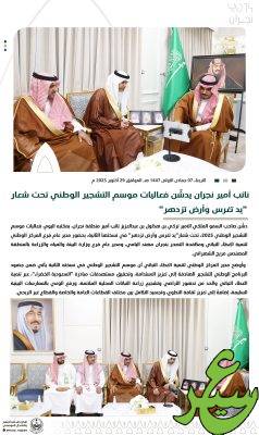 دشّن صاحب السمو الملكي الأمير تركي بن هذلول بن عبدالعزيز نائب أمير منطقة نجران، بمكتبه اليوم، فعاليات موسم التشجير الوطني 2025، تحت شعار”يد تغرس وأرض تزدهر” في نسختها الثانية، بحضور مدير عام فرع المركز الوطني لتنمية الغطاء النباتي ومكافحة التصحر بنجران مهند اليامي، ومدير عام فرع وزارة البيئة والمياه والزراعة بالمنطقة المهندس مريح الشهراني.