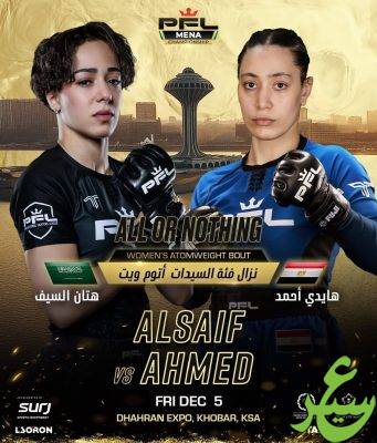 وتواجه السيف في هذا النزال المرتقب المقاتلة المصرية هايدي أحمد، في مواجهة تحمل طابعاً خاصاً كونها أول ظهور رسمي لها على المستوى الاحترافي بعد مسيرة ناجحة في منافسات الهواة.