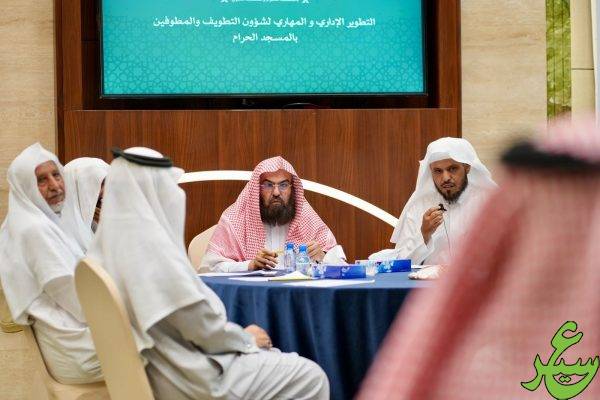 وتناول اللقاء عددًا من المحاور المتعلقة برفع كفاءة العاملين، وتعزيز المهارات الميدانية، وتطوير الأدوات الإدارية، وتحسين الخدمات التشغيلية؛ بما يسهم في الارتقاء بجودة خدمات التطويف وتحقيق أعلى معايير التميز. كما جرى استعراض تجارب ميدانية وأفكار تطويرية تواكب تطلعات الرئاسة وتسهم في تحسين تجربة قاصدي المسجد الحرام.