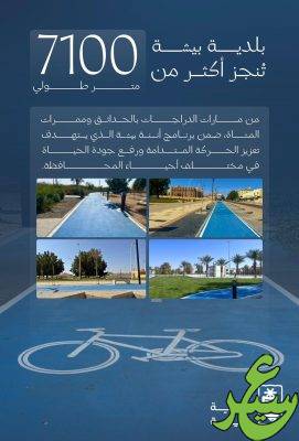 أنجزت بلدية بيشة تنفيذ أكثر من 7,100 متر طولي من مسارات الدراجات في الحدائق العامة وممرات المشاة، وذلك ضمن برنامج «أنسنة بيشة» الذي تنفذه البلدية بهدف تعزيز الحركة المستدامة، وتوفير خيارات تنقل صحية وآمنة في مختلف أحياء المحافظة.