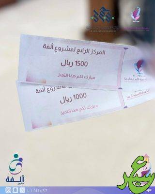 وشهد حفل الختام تكريم المستفيدين بحضور الأستاذة مها الشهري الرئيس التنفيذي للجمعية، حيث بلغت قيمة الجوائز 20,000 ريال، قُدمت للآباء والأمهات المشاركين، تقديرًا لالتزامهم وتفاعلهم مع رحلة المشروع.