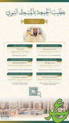 حددت رئاسة الشؤون الدينية بالمسجد الحرام والمسجد النبوي، أسماء خطيبا وإماما صلاة الجمعة في الحرمين الشريفين ليوم غد الجمعة 20 رجب 1447هـ وذلك ضمن جدولها الدوري لتنظيم الإمامة والخطابة.