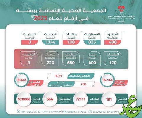 وأكد رئيس مجلس إدارة الجمعية المكلف المهندس علي بن هادي الشهراني أن هذه الأرقام جاءت نتيجة العمل بروح الفريق الواحد، والدعم الذي تحظى به الجمعية، مشيرًا إلى حرص «حياة» على تطوير خدماتها الصحية والإنسانية، وتعزيز الشراكات المجتمعية، بما يسهم في تحسين جودة الحياة وتحقيق أثر تنموي مستدام بمحافظة بيشة.