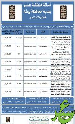 أعلنت بلدية بيشة عن طرح عددٍ من الفرص الاستثمارية الجديدة في مواقع متعددة داخل المحافظة، وذلك ضمن جهودها الرامية إلى تعزيز التنمية الاقتصادية، وتحسين جودة الحياة، ودعم الشراكة مع القطاع الخاص.