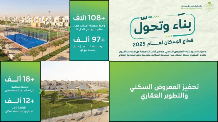 واصلت وزارة البلديات والإسكان خلال عام 2025 تحقيق منجزات نوعية في قطاع الإسكان، أسهمت في زيادة المعروض السكني، وتعزيز الاستقرار السكني للأسر السعودية، ورفع كفاءة السوق العقاري، ضمن منظومة متكاملة ترتكز على تطوير المعروض السكني، وتوسيع الحلول التمويلية، وتعزيز البيئة التنظيمية والتشريعية، بما يحقق مستهدفات رؤية المملكة 2030 في رفع نسبة التملك وتحسين جودة الحياة.