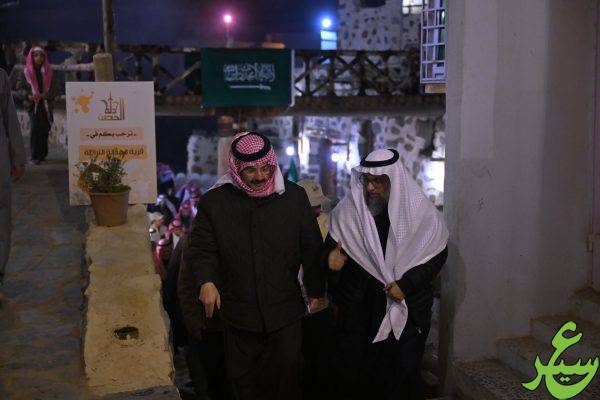 وانتقل سموه إلى محافظة بلقرن، حيث زار قرية الطوف التراثية بشعف بلقرن واطلع على تجربة تطوير القرية وتحويلها إلى وجهة سياحية تراثية تضم نزلًا ريفية ومواقع تراثية تستقطب الزوار من داخل المملكة وخارجها؛ موجهًا بتضمين القرية ضمن قائمة القرى التي يتم العمل عليها في تطوير القرى التراثية بالمنطقة.