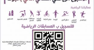 المـزيدفرع وزارة الرياضة بالجوف تعلن إقامة الأسبوع النسائي الرياضي الثاني “يلا رياضة”