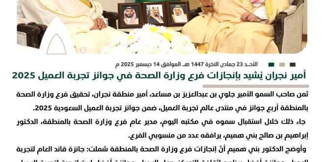 صحيفة عسير – أحمد شيبان : أستقبل صاحب السمو الملكي الأمير فيصل بن خالد بن عبد العزيز أمير منطقة عسير في مكتبة بالإمارة اليوم محافظ محافظة بيشة محمد بن سعيد بن سبرة ، ومدير إدارة الشؤون الزراعية بمنطقة عسير المهندس فهد الفرطيش ، ورئيس بلدية المحافظة المهندس محمد البشري ومدير فرع الزراعة ببيشة المهندس سالم القرني وذلك بمناسبة أختتام مهرجان الصفري بمحافظة …