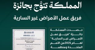 المـزيدالمملكة تُكرَّم بجائزة أممية تقديرًا لجهودها في مكافحة الأمراض غير السارية