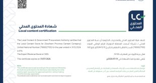 صحيفة عسير ـ عثمان الشهراني حققت شركة أسمنت المنطقة الجنوبية إنجازاً بارزاً بحصولها على شهادة المحتوى المحلي لعام 2024م بنسبة 61%، إضافة إلى إيرادات من الصادرات بلغت 1.58%، ليصل إجمالي المحتوى المحلي للشركة إلى 62.58%، متجاوزة بذلك مستهدفها لعام 2025م. ويعكس هذا الإنجاز مسيرة تصاعدية للشركة في دعم المحتوى المحلي خلال الأعوام الأخيرة، حيث سجلت 40.73% في 2022م، ثم …