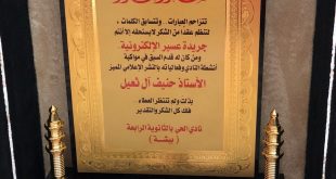 صحيفة عسير – خلود عبدالله : كرم نادي الحي بالثانوية الرابعة بمحافظة بيشة مساء اليوم الاحد الموافق ١٤٤٠/٤/٢٣هـ ، صحيفة عسير الإلكترونية ممثلة بمدير التحرير أ/ حنيف آل ثعيل ،والزميلة / رهف آل ذياب “محرره” والزميلة / نورة سلطان ” مصورة ” بدرع تذكاري ،وشهادتي شكر تقدير ، وذلك نظير ما قدمته صحيفة عسير الإلكترونية من تغطيات لإنشطة النادي وفعالياته …