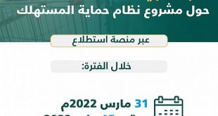 صحيفة عسير ــ واس دعت وزارة التجارة المهتمين والعموم إلى إبداء آرائهم ومقترحاتهم حيال مشروع نظام حماية المستهلك، حتى تاريخ 14/10/1443هـ الموافق 15/5/2022م. وأوضحت الوزارة بأنها أعدت مشروع نظام حماية المستهلك لحماية وتعزيز حقوق المستهلكين في المملكة، وذلك بعد دراسة الوضع الراهن للسوق والتعاملات والاستفادة من أفضل التجارب والممارسات الدولية، لوضع إطار تنظيمي يعالج التحديات ويتوافق مع المعايير والقواعد الدولية …
