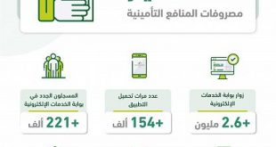 صحيفة عسير ــ واس أوضحت المؤسسة العامة للتأمينات الاجتماعية في إحصاءاتها الشهرية أن مجموع المنافع التأمينية المصروفة لعملاء المؤسسة قد بلغ أكثر من 9.8 مليارات ريال لشهر فبراير 2022م، كما تم إنجاز أكثر من 7.9 ملايين معاملة إلكترونياً. وحول خدماتها الإلكترونية بينت أن عدد زوار البوابة الإلكترونية قد تجاوز حاجز 2.6 مليون زيارة خلال شهر فبراير، فيما بلغ عدد المسجلين …
