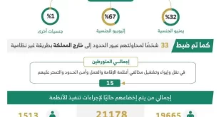 صحيفة عسير ـ واس أسفرت الحملات الميدانية المشتركة لمتابعة وضبط مخالفي أنظمة الإقامة والعمل وأمن الحدود، التي تمت في مناطق المملكة كافة، وذلك للفترة من 09 / 09 / 1447هـ الموافق 26 / 02 / 2026م إلى 15 / 09 / 1447هـ الموافق 04 / 03 / 2026م، عن النتائج التالية: أولًا: بلغ إجمالي المخالفين الذين تم ضبطهم بالحملات الميدانية …